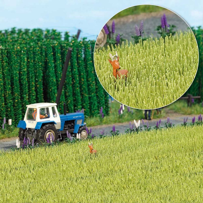 The barley stems have fine leaves and thickened points (grain). Approximately 50 barley stems are located on a soil strip, so it is easy to plant a larger field. Package contains over 3,000 stems to make an approx. 100cm² barley field, roughly 10 mm high.