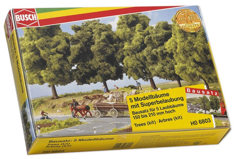 Kit for 5 deciduous trees (1 x 210 mm, 2 x 180 to 150 mm). The trees can look surprisingly authentic because of the special folliage supplied.