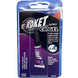 Roket CA Gel bonds hard plastic, wood, metal & synthetic rubber in 5-10 secs and is packed in an easy to squeeze metal tube for long life