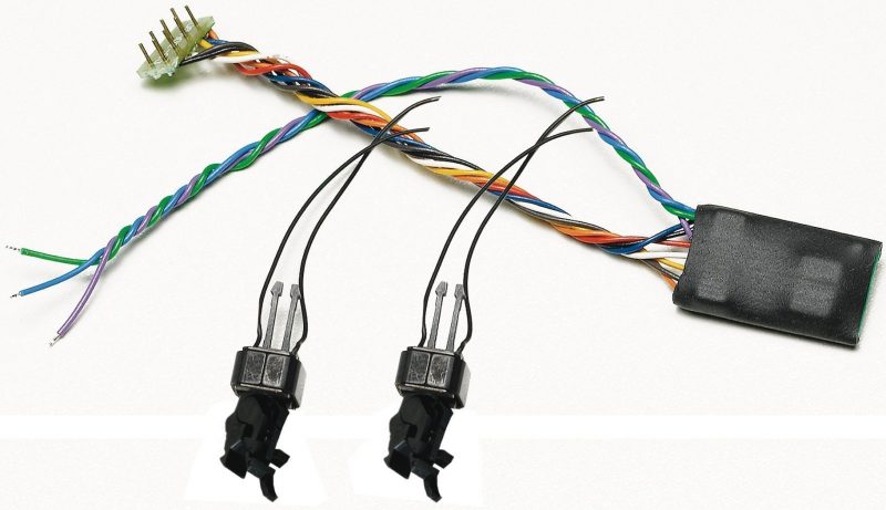 The set contains 1 Multiprotocol special decoder for AC and DC versions and 2 couplers. The couplers can only be properly controlled with this decoder. The use of any different decoders can cause damages to the couplers. Automatic driving current recognition Motorola/DCC or analog AC/DC. Automatic driving level recognition 14/28/128 levels.