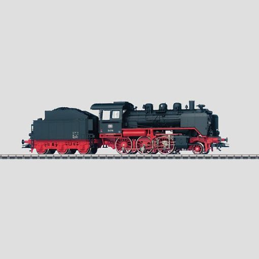 The locomotive has a digital decoder and a special motor. The boiler is constructed of metal. All driving axles powered. Traction tires. The locomotive has close couplers in NEM coupler pockets. The triple headlights change over with the direction of travel, will work in conventional operation and can be controlled digitally. The headlights are maintenance-free LED’s. The locomotive has a smoke generator contact: It is ready for installation of a smoke generator.