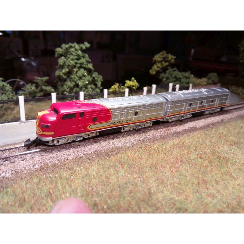 The A unit comes with a 5-pole motor that powers both trucks. The B unit is unpowered. The number boards are lighted. The front Z coupler on the A unit can be replaced by the pilot that is included with the locomotive. The two locomotive units are permanently coupled together with a drawbar. Total length 150 mm / 5-7/8″.