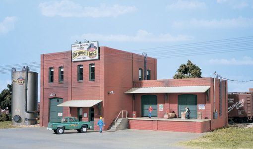 Set a busy ink manufacturing and distribution center along a layout spur. This mainstay business includes many details, such as ladders, barrels, awnings, roof vents, electric conduit, light fixtures, air conditioner, dry transfer detals and more!