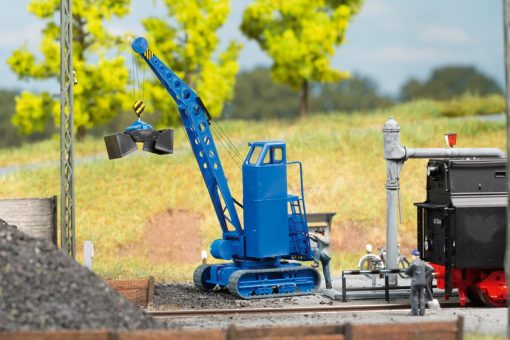 It can also have either a crawler track or a fixed concrete base. It is used in depots to load coal onto the locomotives and for other loading jobs. All parts for the various construction options are included. With hook and claw.