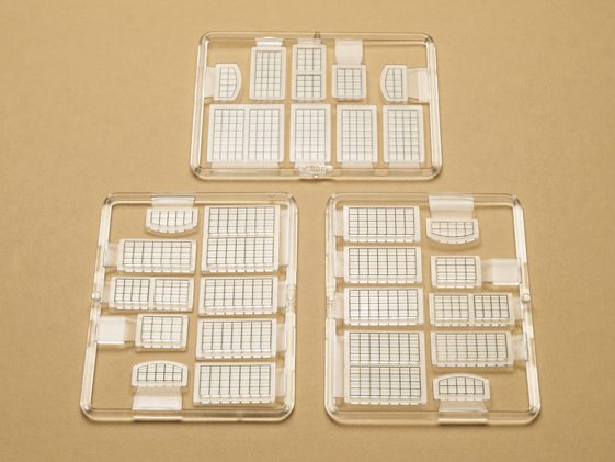 The black overprinted window divisions give a delicate filigree appearance. Contains 15 windows 22 x 11 mm, including round arches.