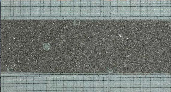 110 mm wide, 1m long. Busch roads are self-adhesive, flexible, and only 0.6 mm thin.