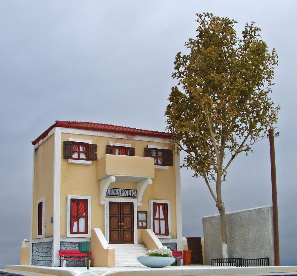 GR: Ενα διώροφο Δημαρχείο που βρίσκεται σε όλα τα Ελληνικά χωριά. Με μπαλκόνι για τα “θα” και πίσω πόρτα διαφυγής!