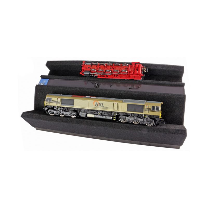 The ESU Premium Foam Train Service Tray is the ideal tool for the maintenance and care of your locomotives. Two recesses are available for perfect work: The locomotive can be clamped upside down to comfortably reach the underbody of the locomotive. In the classic inclined tray, you can easily reach the sidewalls of the locomotive or set up the locomotive almost vertically, in order to achieve the interior of the locomotive well.