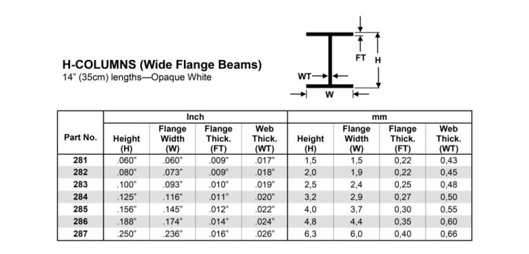 Evergreen – #287 White polystyrene H beam 6,3mm