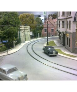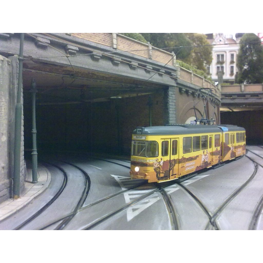 All track is handmade using Peco code75 rail. Power to the trams is supplied from the handmade overhead catenary, through 0,3mm copper contact wire.