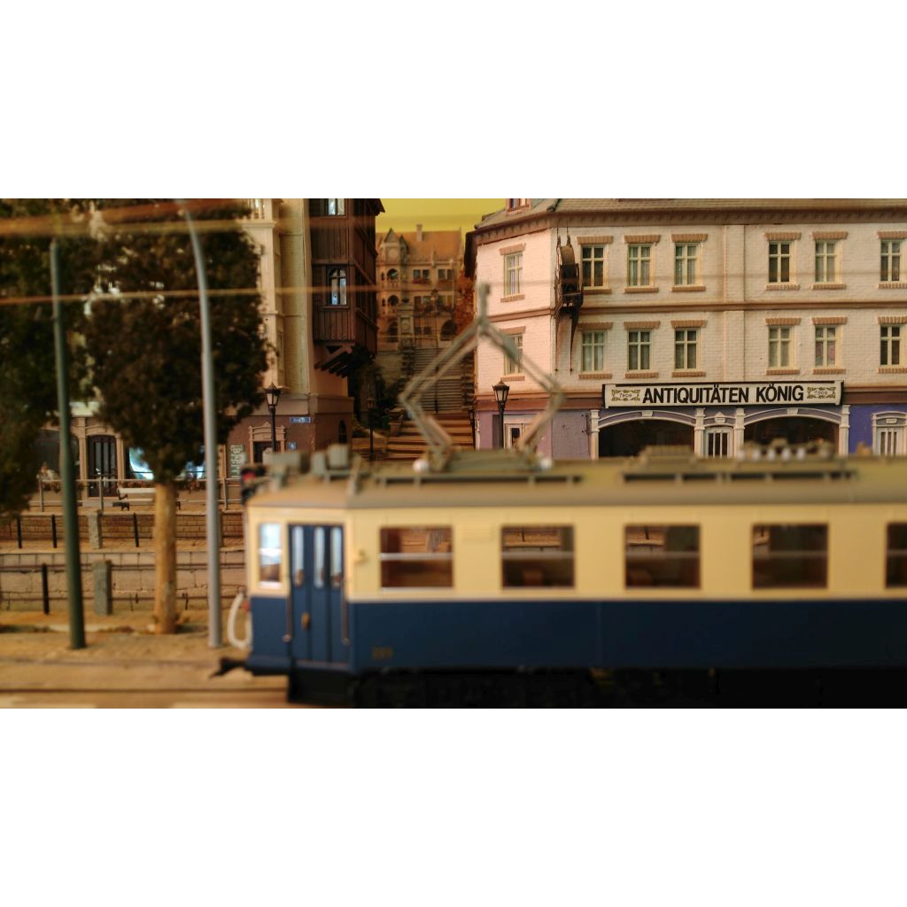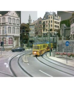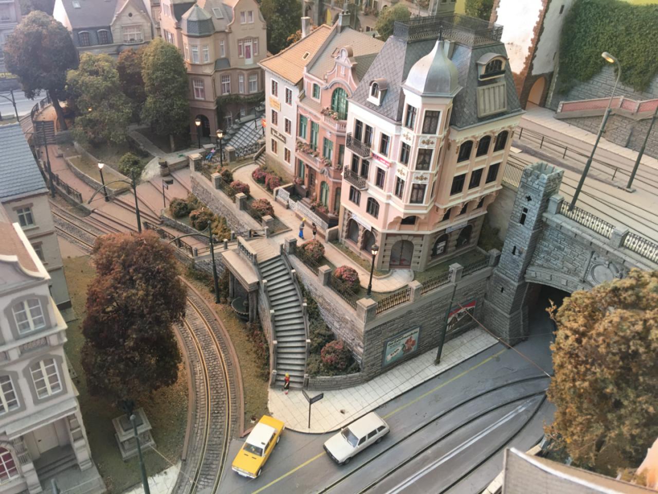 A tram system dominates the lower part of the layout with a branchline connecting the upper part of the city and the castle.