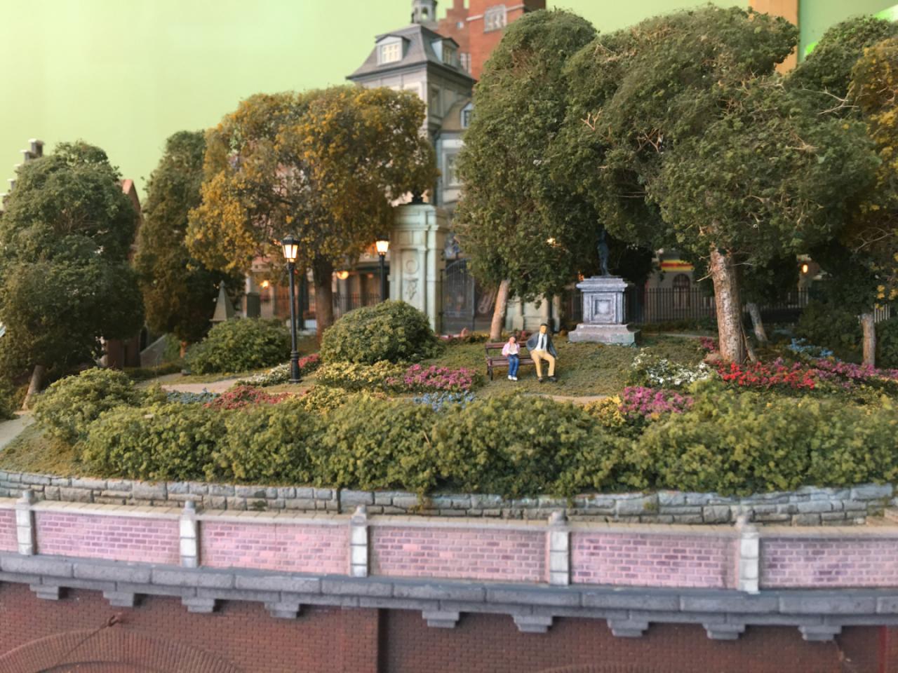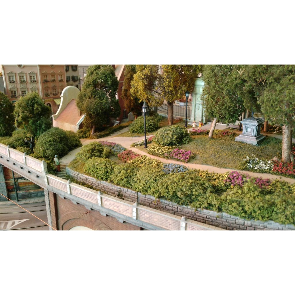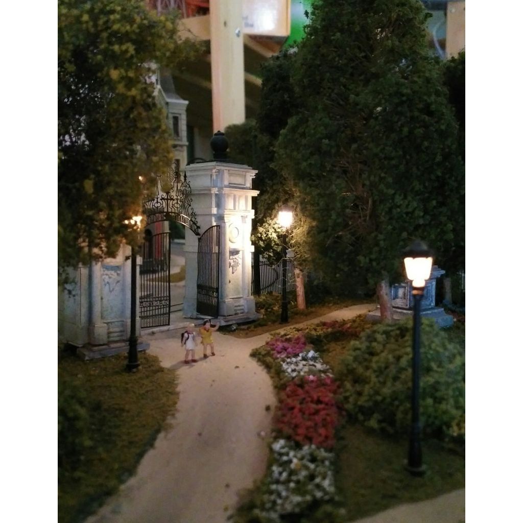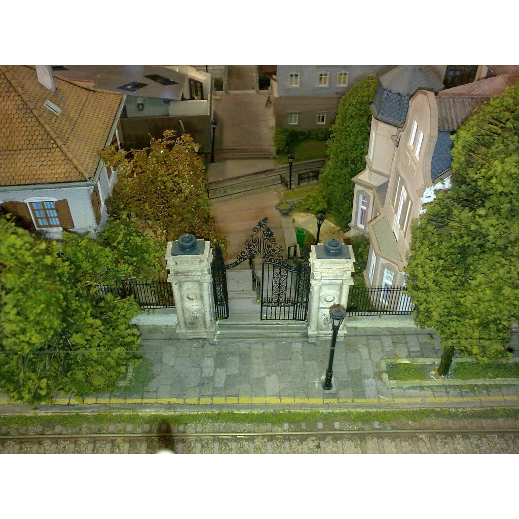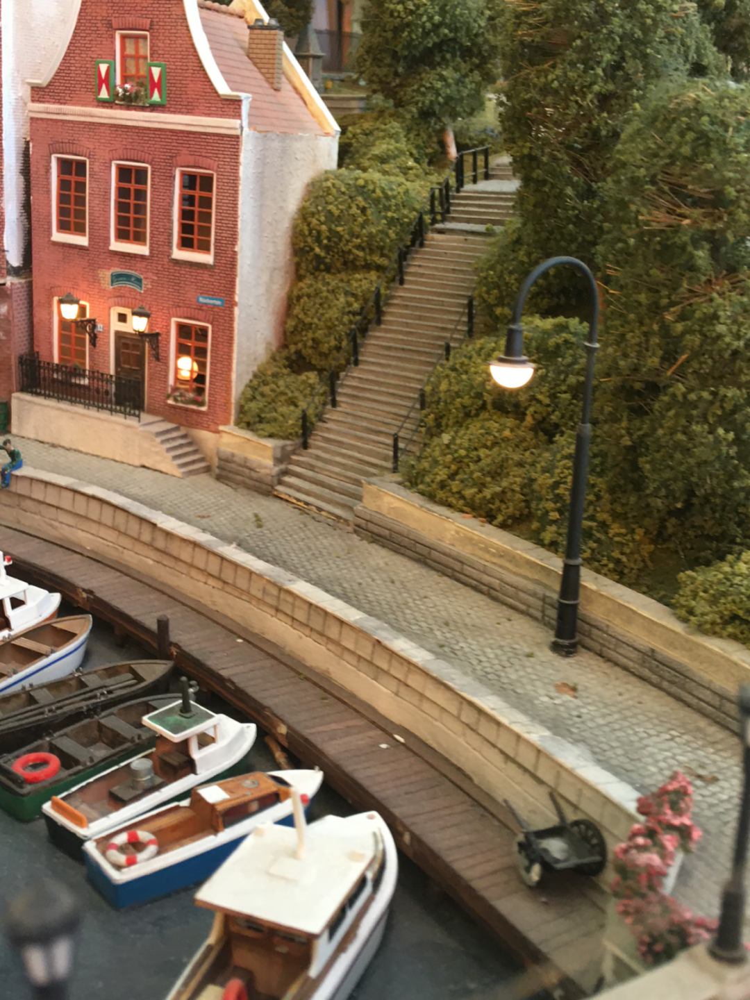It is illuminated by more than 80 handmade street lamps and tiny lights while every effort has been made to deviate from a typical arrangement, using handmade elements for railings, walls, fences etc.