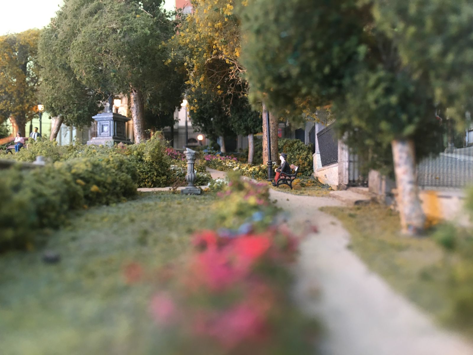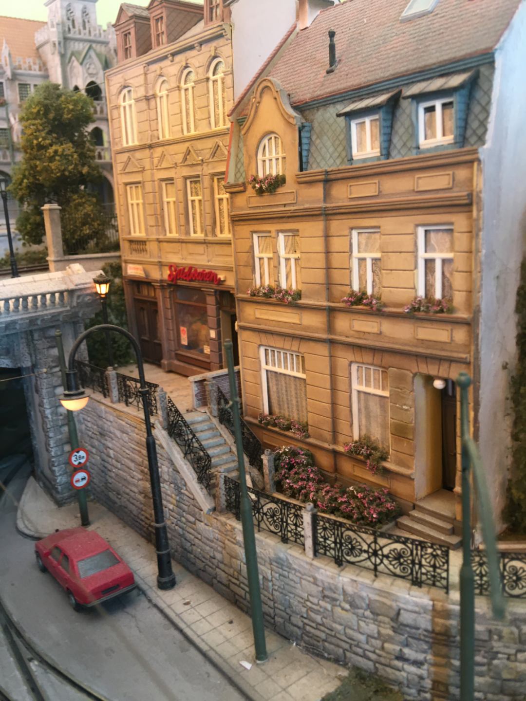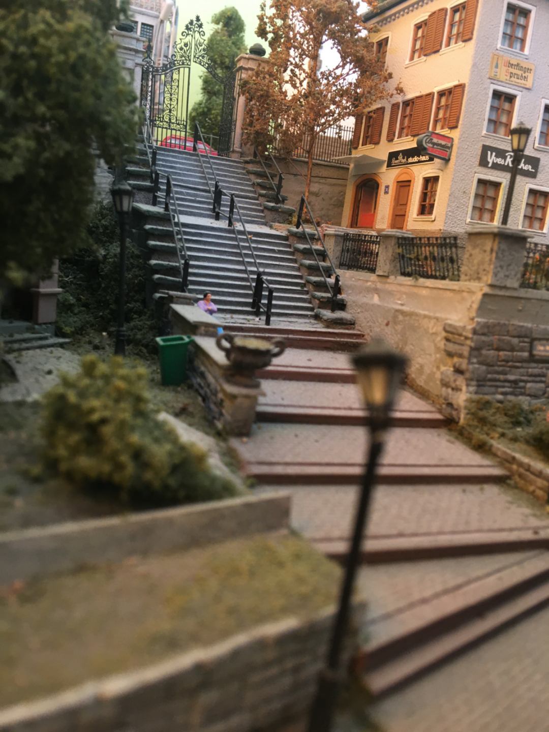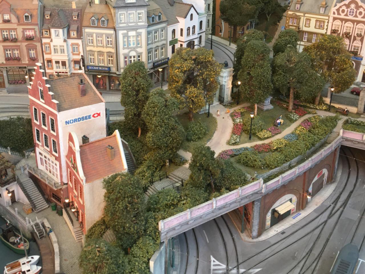 It is illuminated by more than 80 handmade street lamps and tiny lights while every effort has been made to deviate from a typical arrangement, using handmade elements for railings, walls, fences etc.