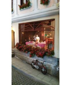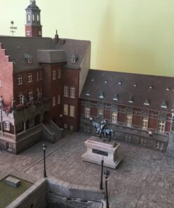 It measures 230x120x80cm and depicts a fictitious central European busy town scene.