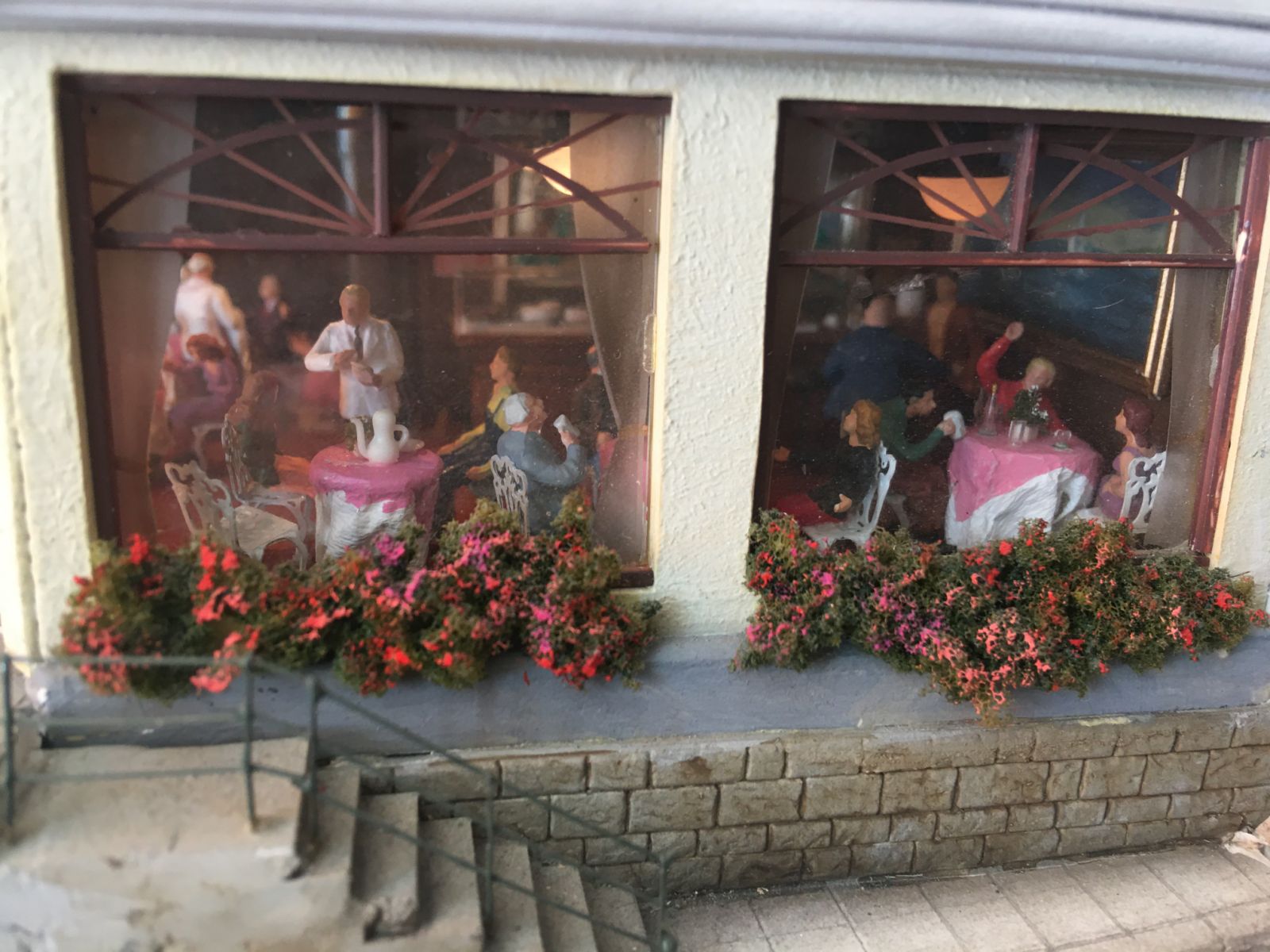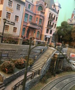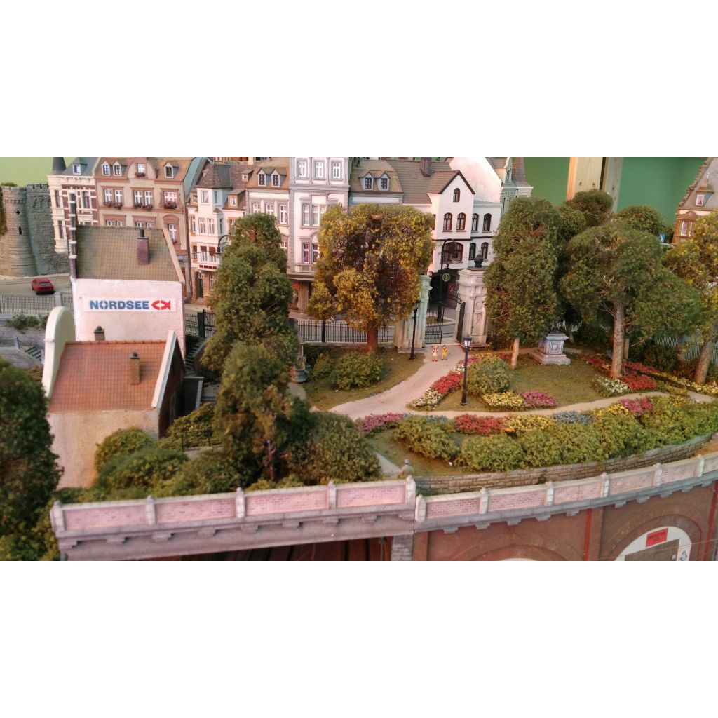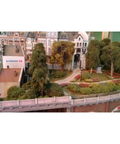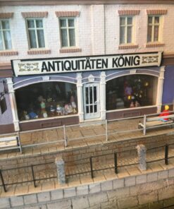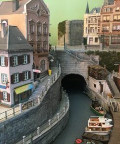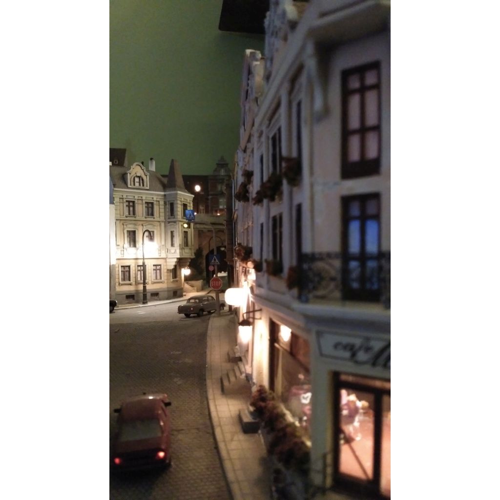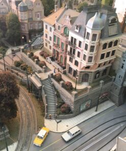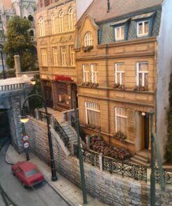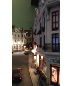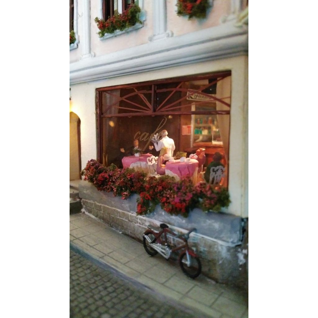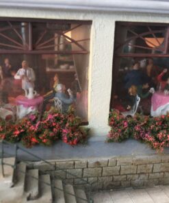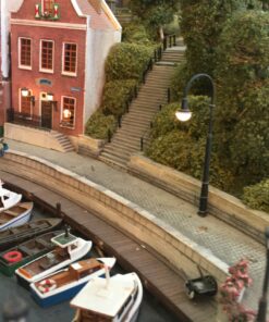 More than 30 buildings carefully modified and painted, form the townscape. Many of them have detailed interior scenes.