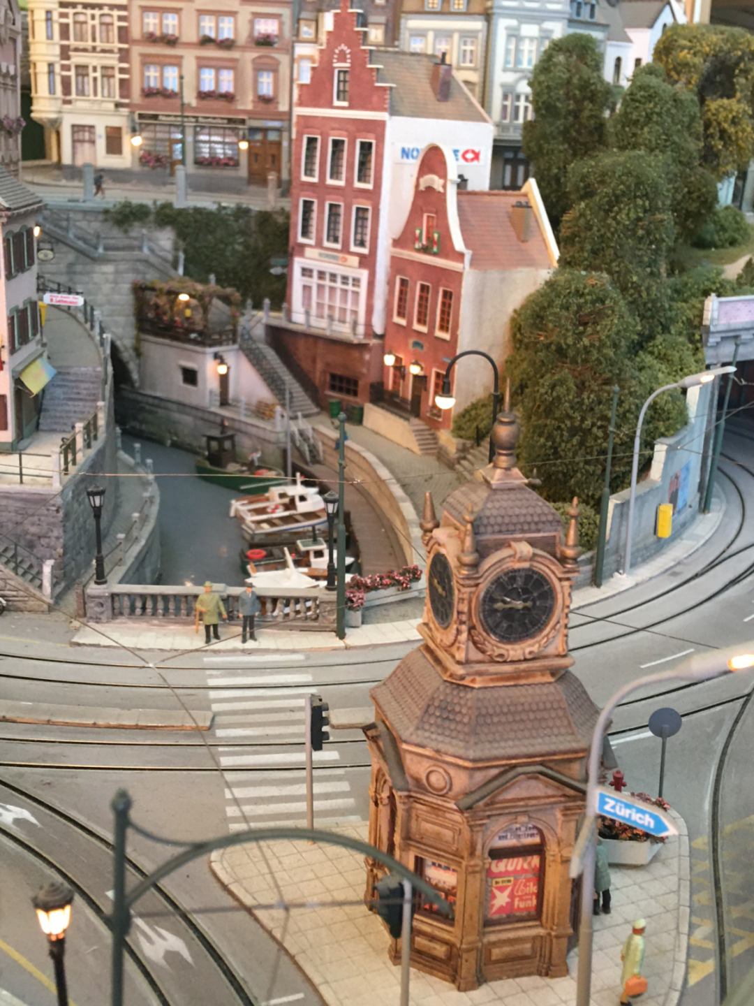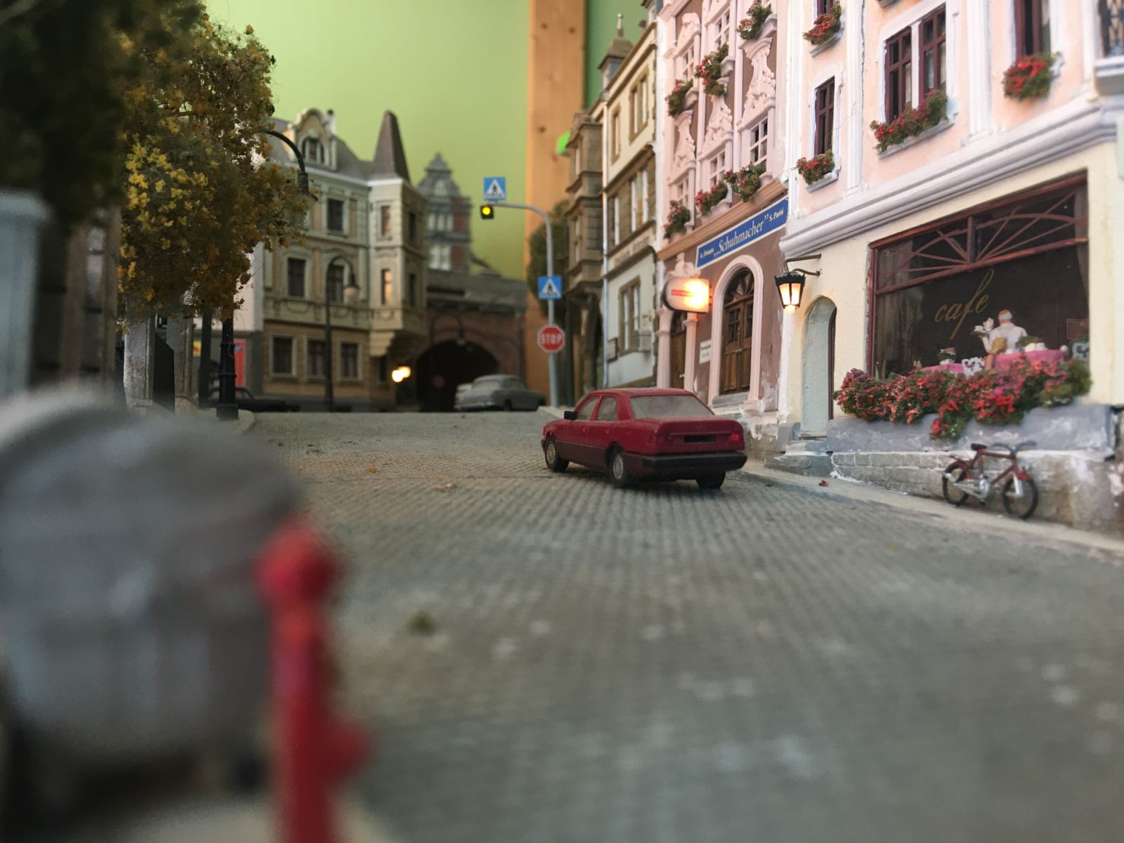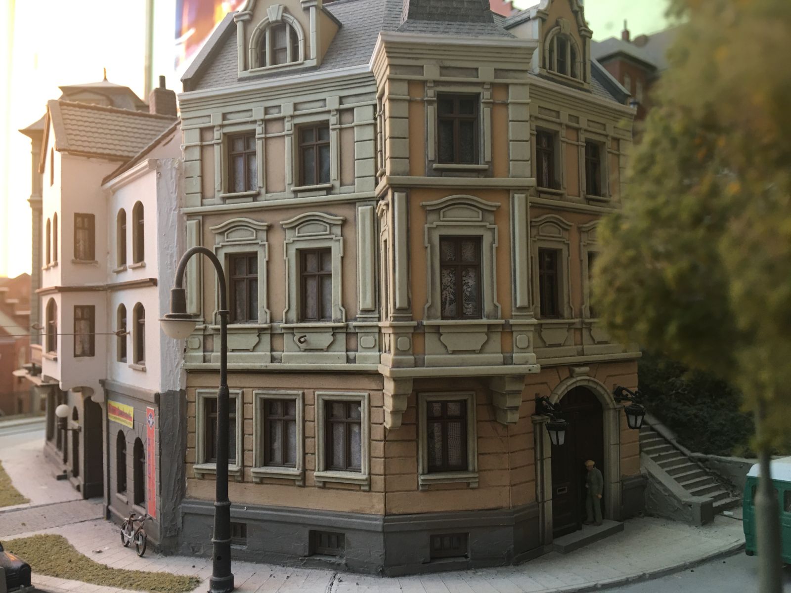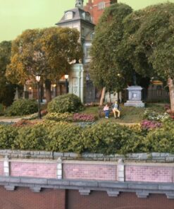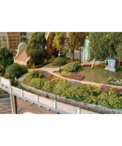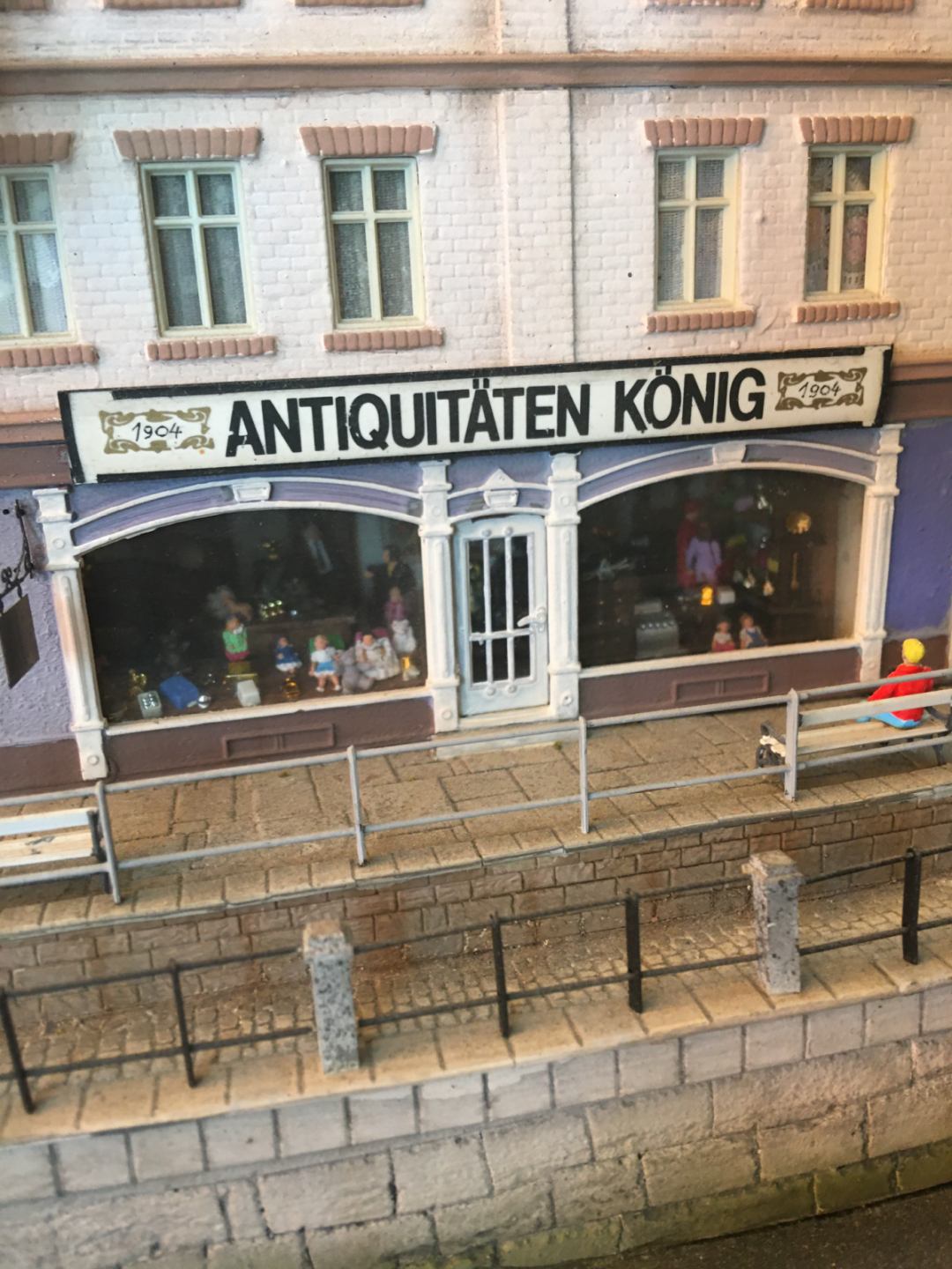 More than 30 buildings carefully modified and painted, form the townscape. Many of them have detailed interior scenes.