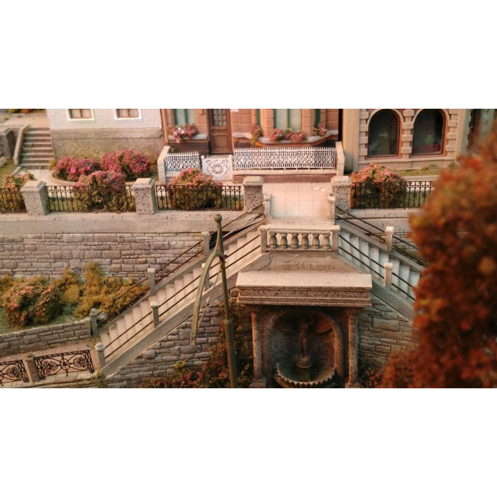 All buildings have added details and many photoetched parts for extra realism. Many narrow streets, cobbled paths and stairs connect the city neighbourhoods, the lower and upper level.