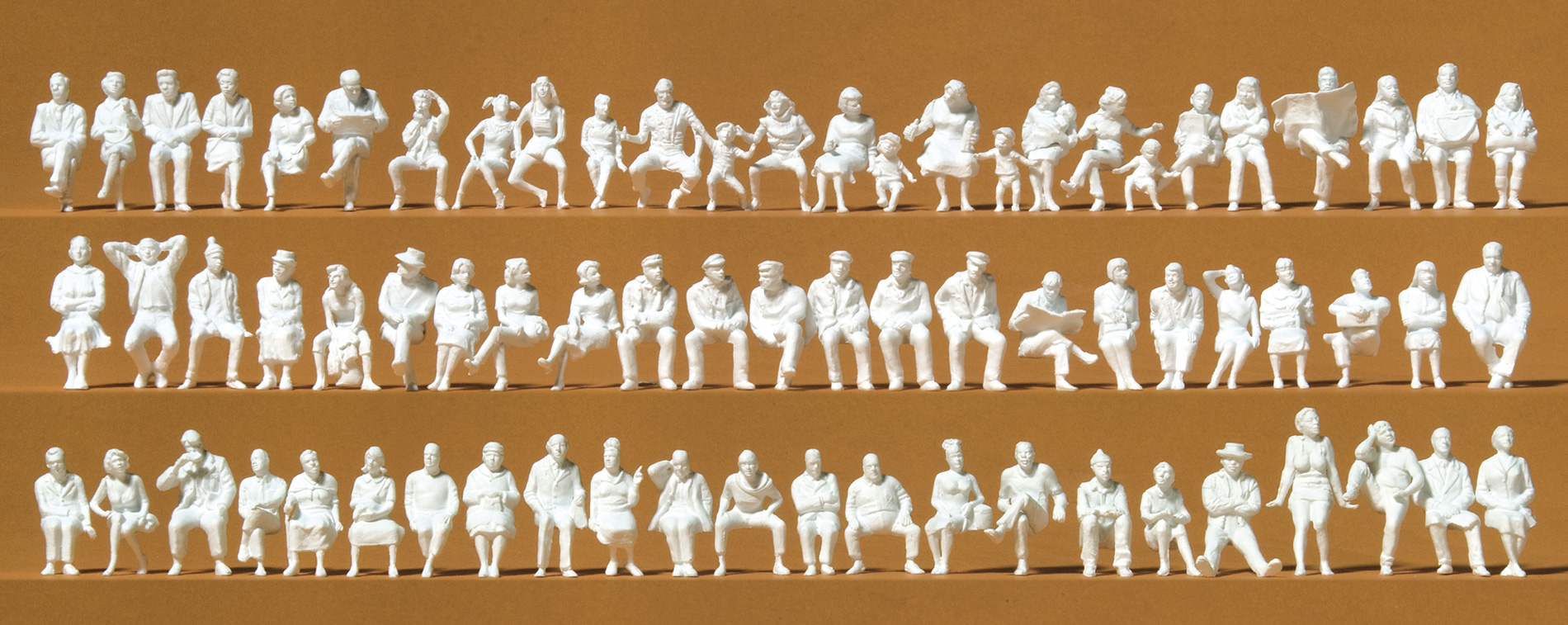 Preiser 16358 – 72x Seated Figures, Unpainted