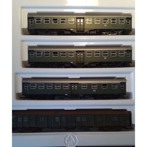 Roco 44053 – 3x “Umbauwagen” coaches set + weathered WD4yge with Preiser figures