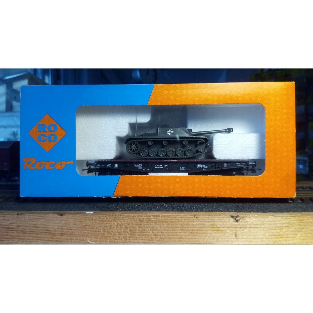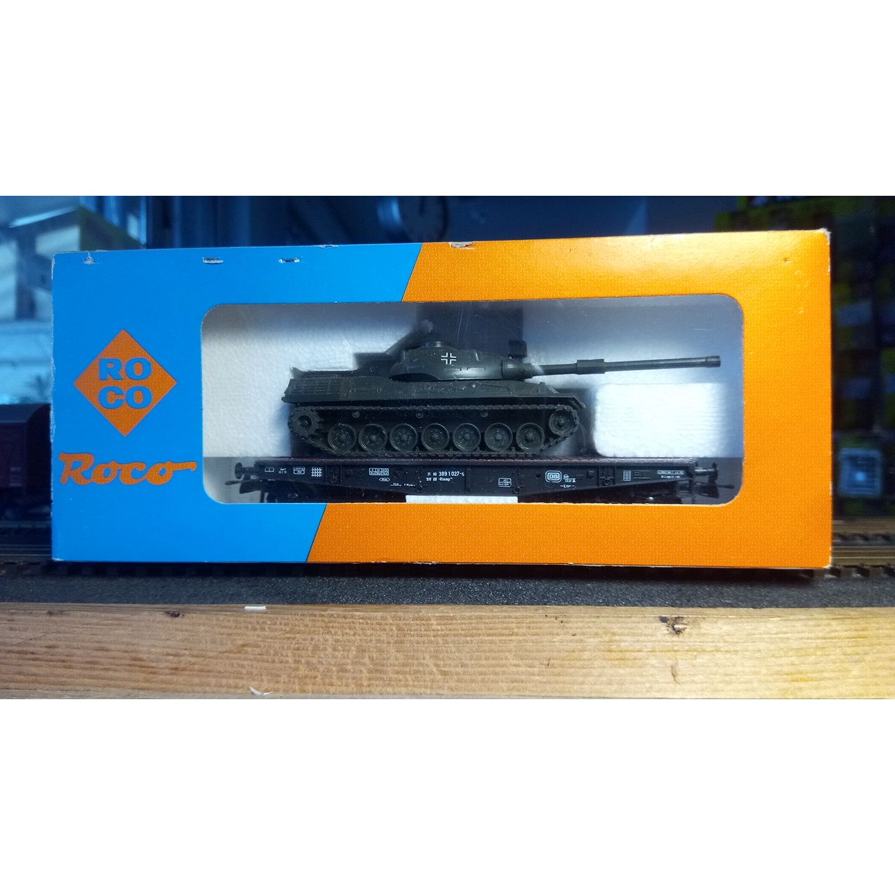 Roco 44313a – 2x DB flat set, loaded with Tank, preowned