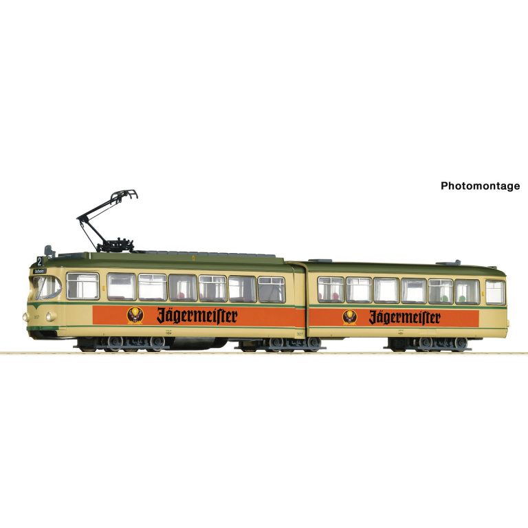 6-axle articulated railcar that promotes the “Jägermeister”. Epoch III-VI.