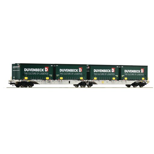 Double container carrier wagon, type Sggmrs, of the Deutsche Bahn.