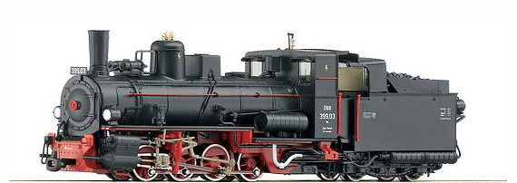Narrow-gauge steam locomotive of the former Mh series, with “epoch V” markings and as class 399 with ÖBB finish.