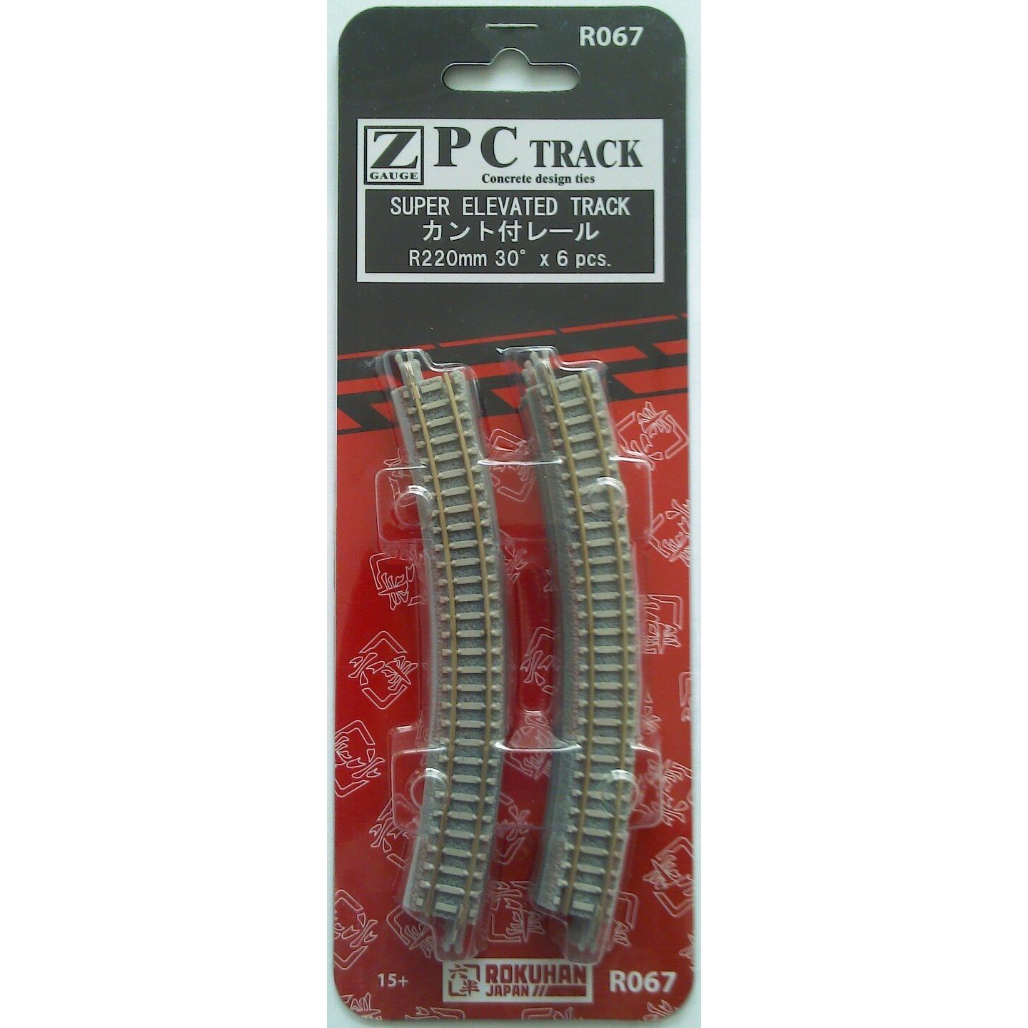 ROKUHAN 7297067 – Z gauge, 6x curved track sections R: 220mm, 30°, super elevated, concrete sleepers