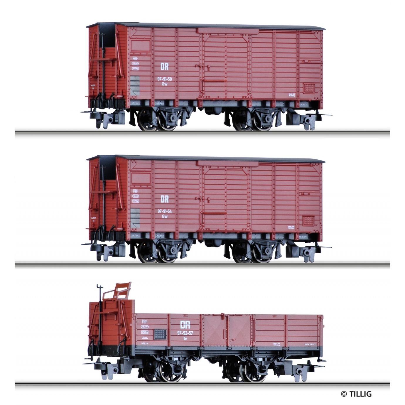 Tillig 05971 – H0e 3x Freight wagon set