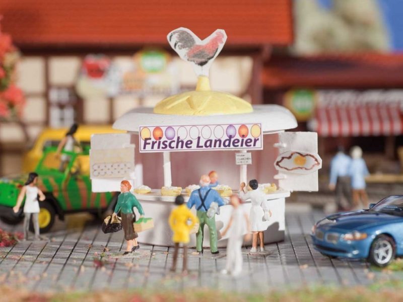 This small sales booth offers during Easter time fresh eggs. The yellow colour of the booth corresponds to colour of best eggs. Dimensions: L 5 x W 5 x H 4,5 cm.